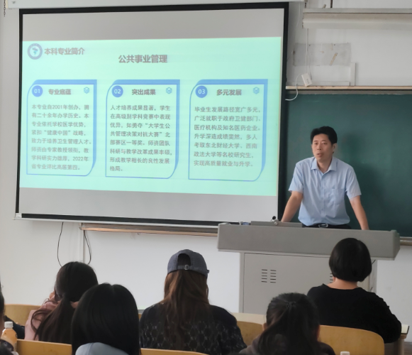 9月26日中午,学院院长马春宇在西校区教学楼202教室为新生开展入学教育,帮助新生进一步了解学院、专业。首先,马春宇院长介绍了学校历史沿革、学院发展及本科研究生各专业建设情况,对92名新生的到来表示热烈欢迎,希望他们能够在健康管理学院这个大家庭共同成长进步;接下来,马春宇院长通过讲述“两弹一星”元勋郭永怀同志事迹,引导新生厚植家国情怀,追寻先辈足迹,志存高远、脚踏实地,勤于思考、勇于创新;最后,马春宇院长就学院毕业生就业方向、就业前景和考研考公优劣点进行了介绍和分析,引导新生从入学之初转变就业观念,精准掌握专业知识、不断提升综合能力,为以后的职业生涯做好规划。此次教育活动不仅增强了新生对学院的归属感、对专业的认同感,也激发了新生的学习热情与成长动力。