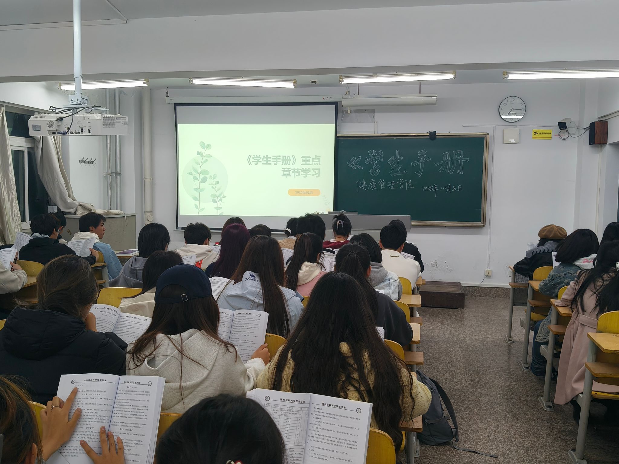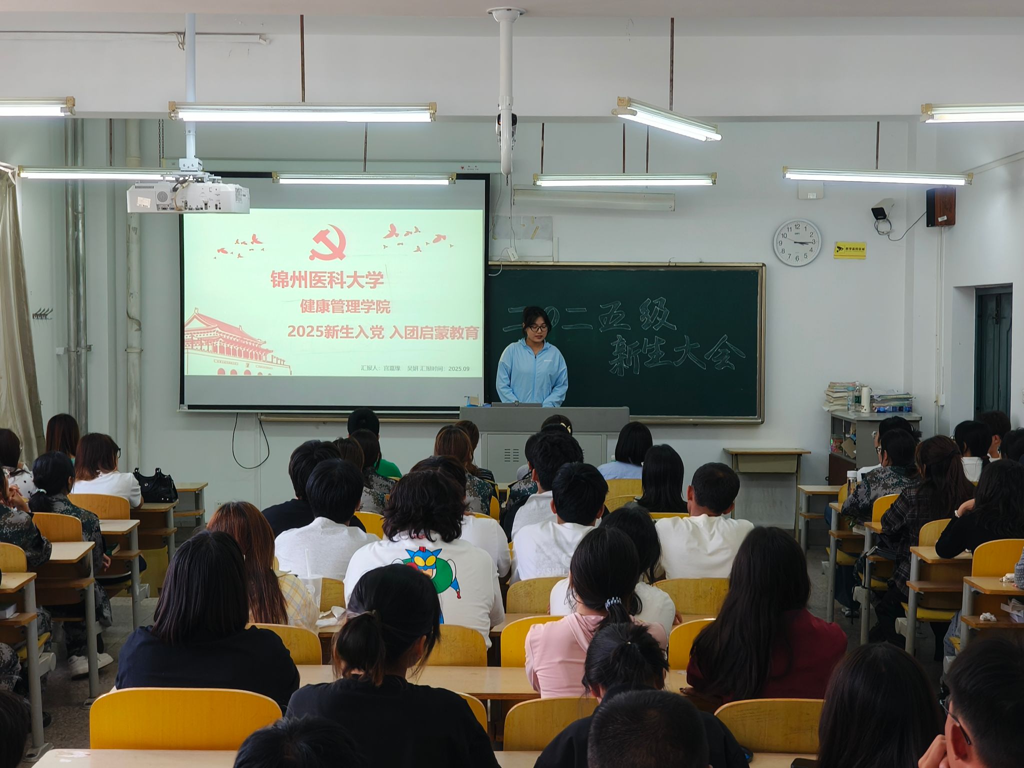 为教育引导2025级新生扣好大学生涯的第一粒扣子,帮助新生坚定理想信念、树立爱校荣校的深厚情怀、巩固专业思想、尽快转变角色适应大学生活,按照《锦州医科大学2025级本科新生入学教育方案》和《锦州医科大学2025级研究生新生入学教育方案》文件精神,健康管理学院于9月7日到10月17日期间,邀请学院领导、老师和优秀学生开展了以“筑梦锦医 青春启航”为主题的学院新生入学集中教育活动,2025级全体新生参会。
