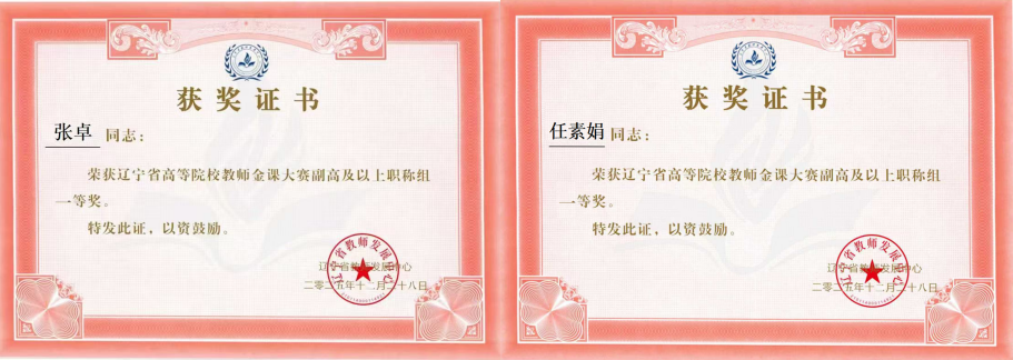 近日,2025年辽宁省高等院校教师金课大赛结果揭晓,我院张卓老师和任素娟老师分别在副高及以上职称组中荣获一等奖和三等奖。